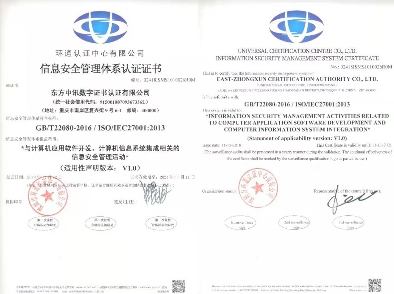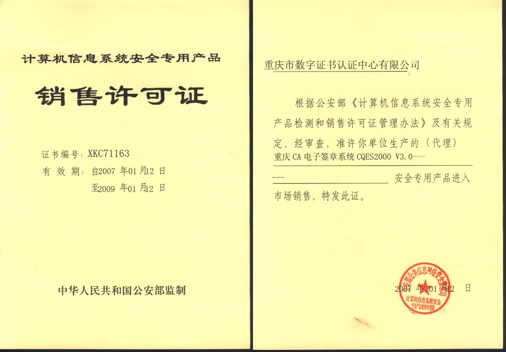 公司獲得了國(guó)家密碼管理局頒發(fā)的《電子認(rèn)證服務(wù)使用密碼許可證》、國(guó)家工信部頒發(fā)的《電子認(rèn)證服務(wù)許可證》、公安部頒發(fā)的《計(jì)算機(jī)信息系統(tǒng)安全專(zhuān)用產(chǎn)品銷(xiāo)售許可證》、擁有“雙軟”和國(guó)家級(jí)高新技術(shù)等資質(zhì)稱(chēng)號(hào),是國(guó)家發(fā)改委信息化示范單位,國(guó)家信息產(chǎn)業(yè)基地龍頭企業(yè)。